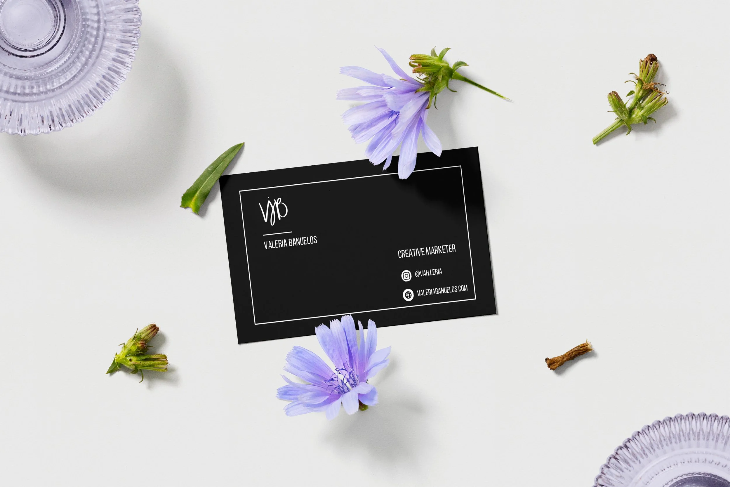 Personal branding My personal branding and visual identity for “Valeria Bañuelos”. Business card + logo designed by me.